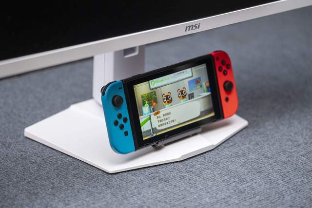 平板式的支架底座在微星显示器的很多型号上都能看到。脚撑式和平板式的底座是显示器上常见的两种形式,我个人更偏爱平板式的,它虽然看起来更占桌面,但实际上并不影响摆放其他东西。